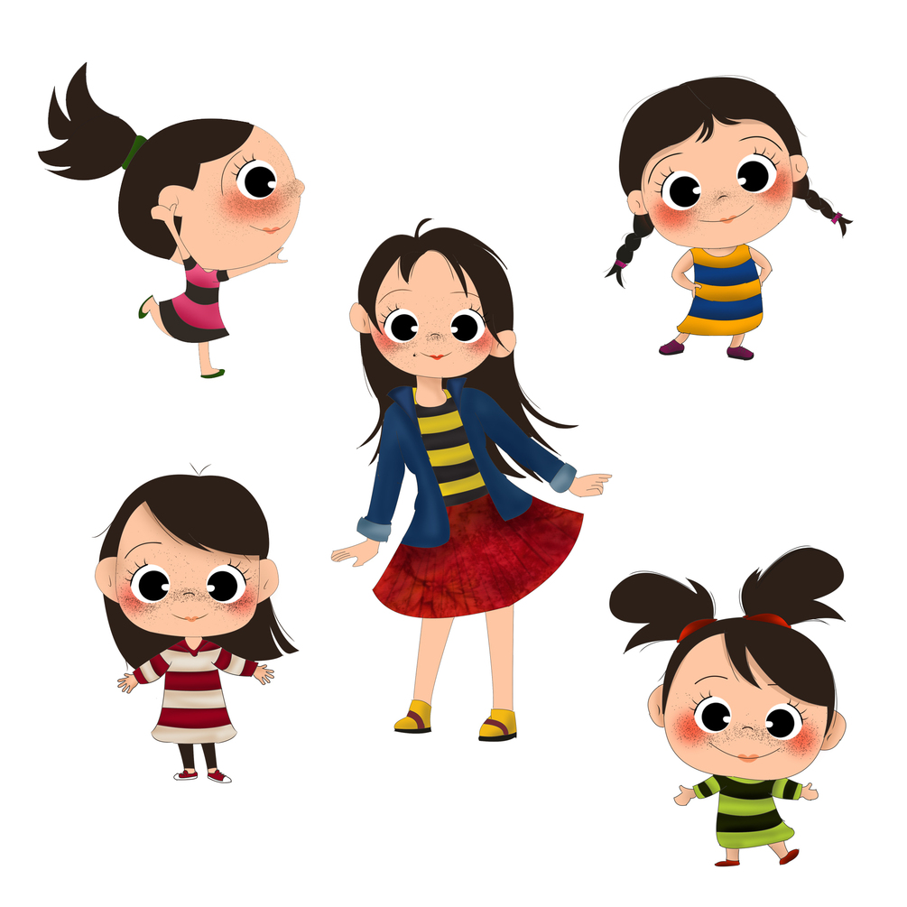 Cute girl Cartoon Pack, File PNG, Instant Download file ZIP, resolution 3000x3000px