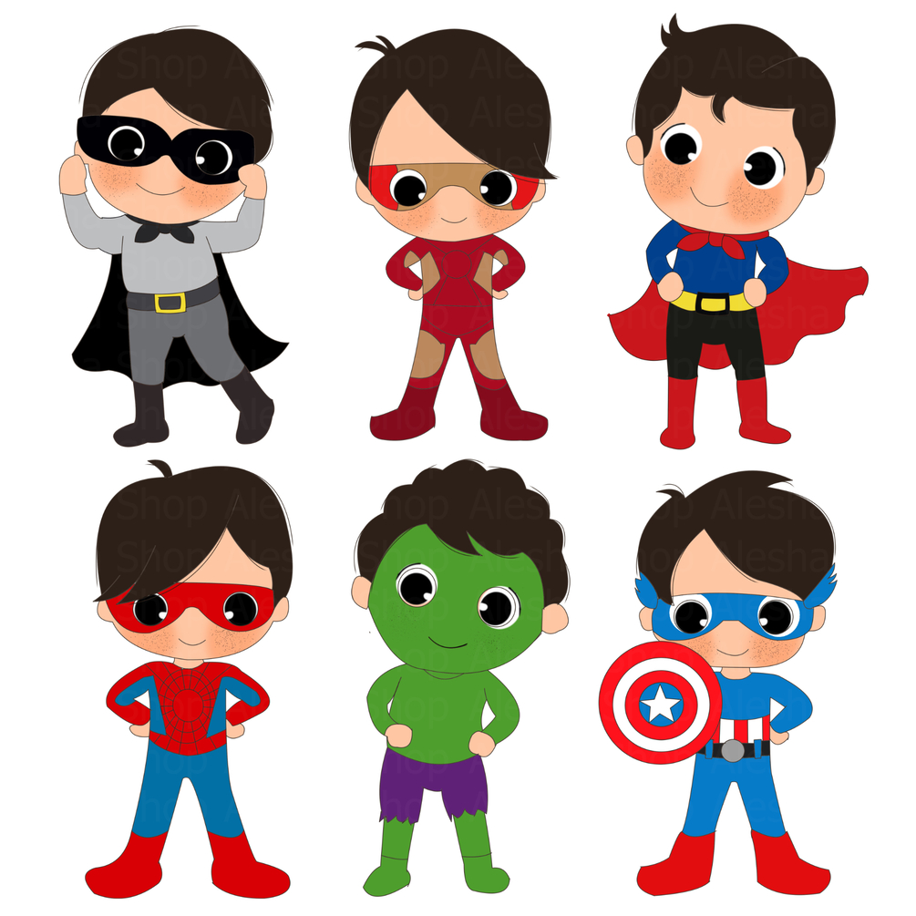 Cute Kids Cartoon Super Hero Boy Pack, Black Line Super Hero Boy File PNG, Instant Download PNG resolution 5000x5000px